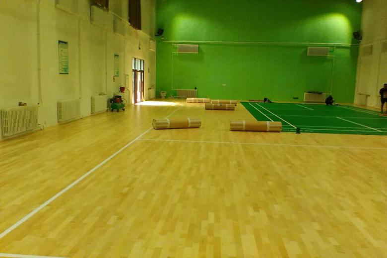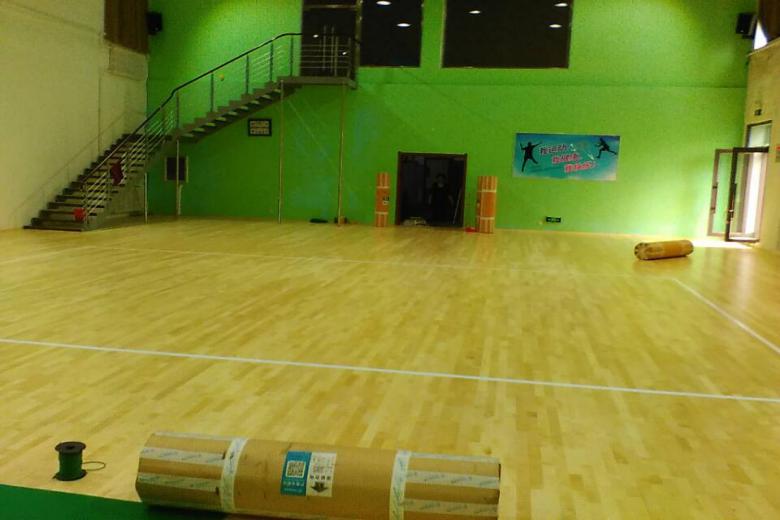 6.鋪設體育木地板:面板材質:均為A級B級優質材的柞木.楓木.